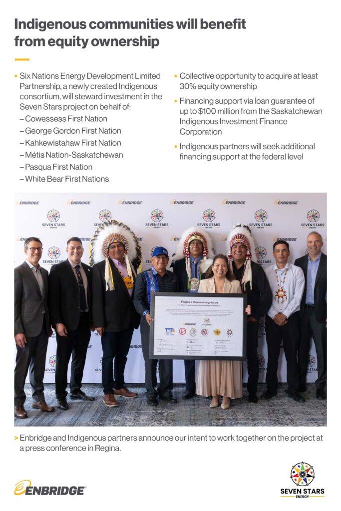 And in recent years, SaskPower has made it a stipulation that all of these projects must have at least a partial Indigenous ownership component. In this case, it’s five First Nations and the Metis Nation of Saskatchewan, plus Enbridge, thus the project name – Seven Stars Energy.