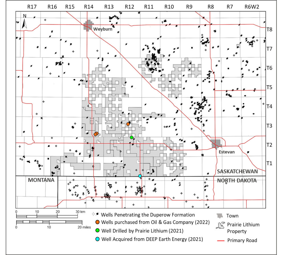 This map shows Prairie Lithium’s land base, and its now-five wells spread throughout. The purpose is to delineate the resource. Prairie Lithium
