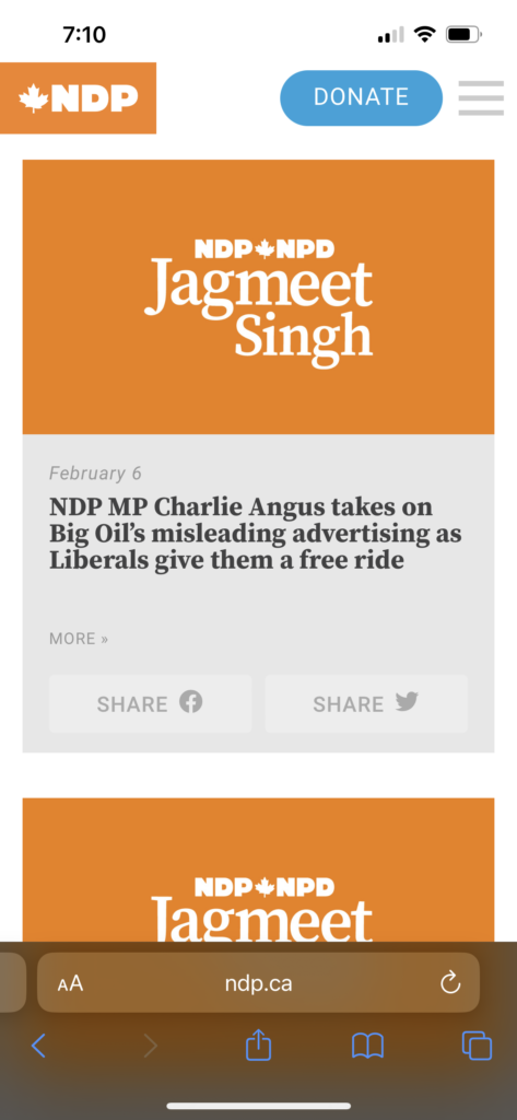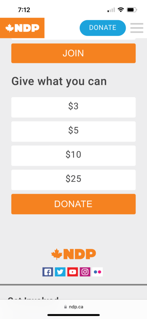 And indeed, below the post on the ndp.ca website was a call for fundraising.