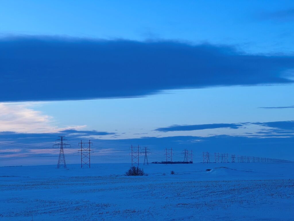 This area, southwest of Hitchcock, is one of the areas currently identified as possibly the most suitable for building two nuclear reactors. It’s flat, empty, an SaskPower’s existing high voltage transmission lines run through it. Photo by Brian Zinchuk