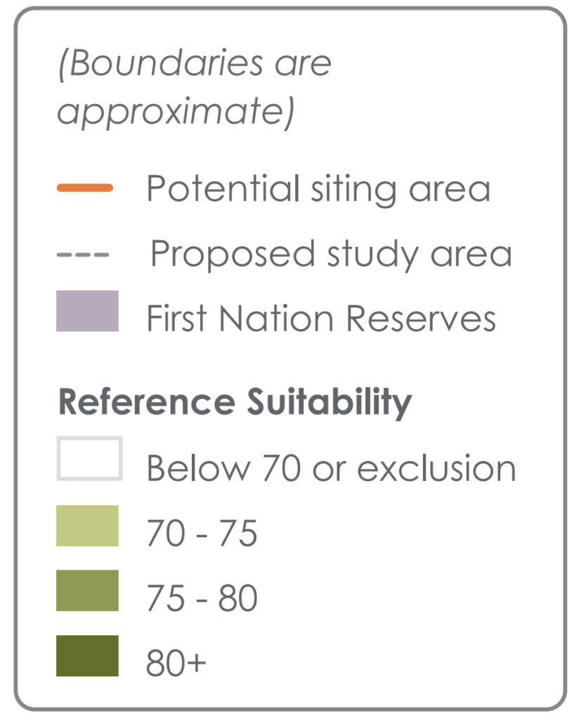 These maps show which regions within the study areas are preferred for hosting an SMR. The darker the green on the map, the more suitable the area is. But the maps are a snapshot in time based on our early technical analysis. There will be several versions of these maps released as we gather: