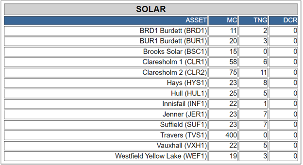 Alberta solar generation summary at noon, MST, Dec. 31, 2021. Source: Alberta Electric System Operator