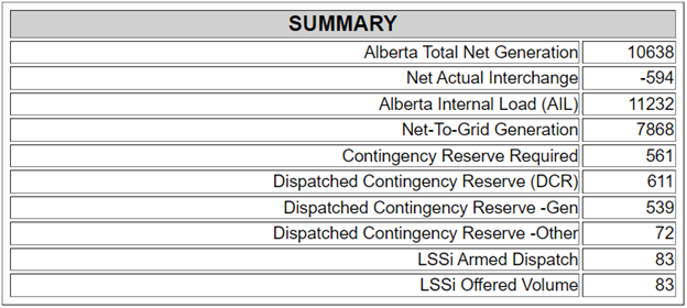 Alberta power generation summary at noon, MST, Dec. 31, 2021. Source: Alberta Electric System Operator
