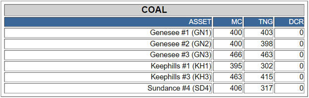 Alberta coal generation summary at noon, MST, Dec. 31, 2021. Source: Alberta Electric System Operator