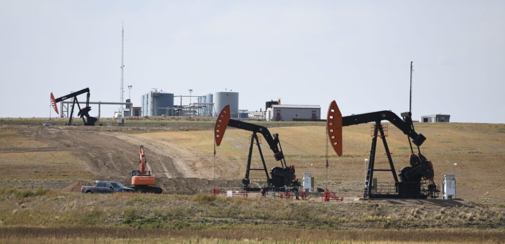 Pumpjacks near a battery southwest of Torquay, Saskatchewan. Photo by Brian Zinchuk