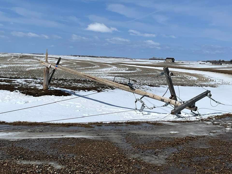 Reeve of the RM of Estevan Jason LeBlanc lives west of the city, just off Highway 18. And that area got hit the worst. On Sunday morning he took a drive down the slushy highway and posted a video on Facebook that was shared 1,600 times by supper. In it, he noted over 100 power poles had been broken along that highway.