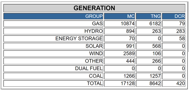 Alberta’s power grid at 9:40 a.m., Sunday, Sept. 18. MC is maximum capacity in megawatts, TNG is total net to grid, in megawatts, and DCR is dispatched, and accepted, contingency reserve. Alberta Electric System Operator.
