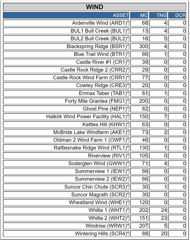 Twelve of 28 wind farms were contributing zero to the grid Sunday morning. Forty Mile Granlea and Wheatland Wind are still under construction, so that accounts for those two facilities. Alberta Electric System Operator.