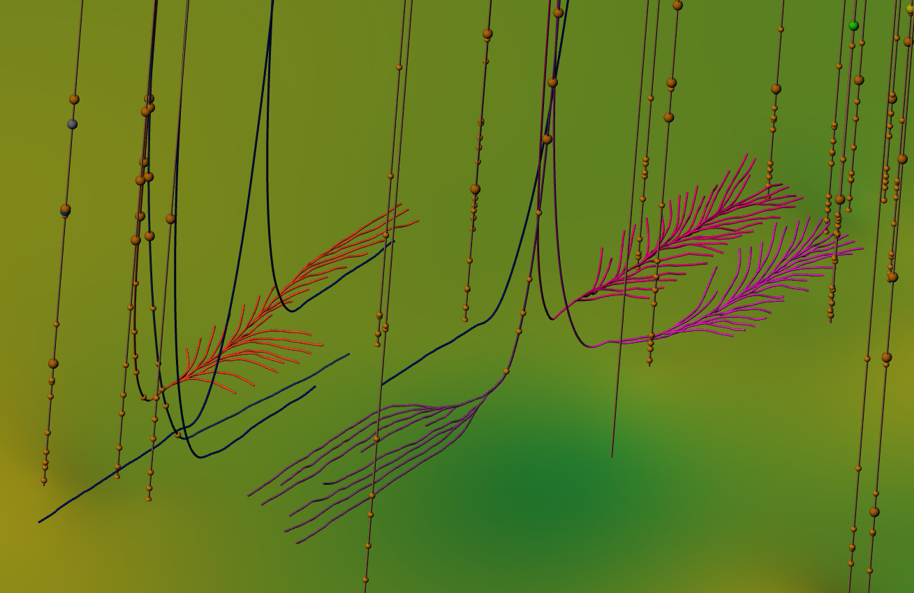 Image courtesy Chinook Geosteering Services, using publicly available data. This shows both the pitchfork and fishbone design, as seen in northwest Saskatchewan.