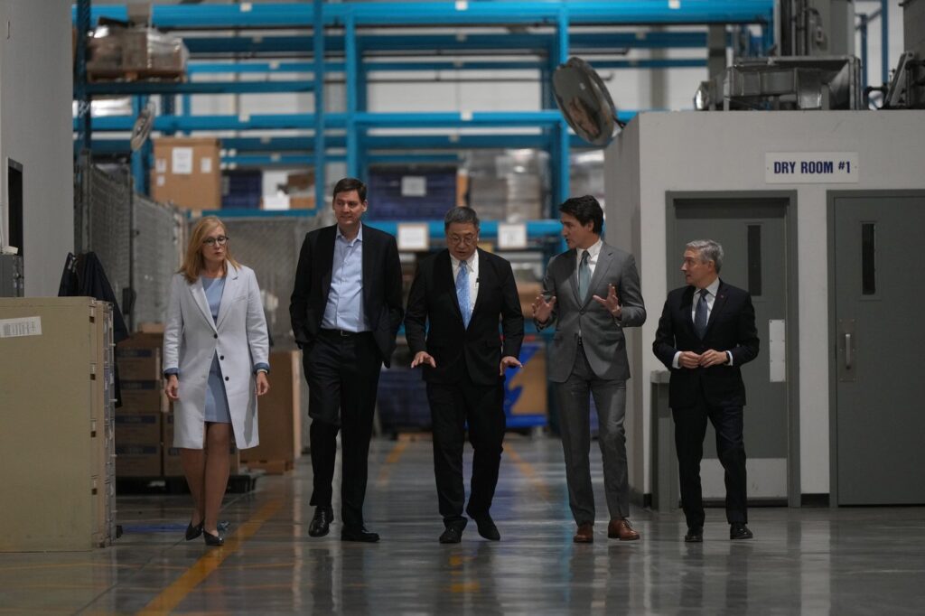 It will be the largest factory in Canada to manufacture such high-performance batteries, Trudeau said.