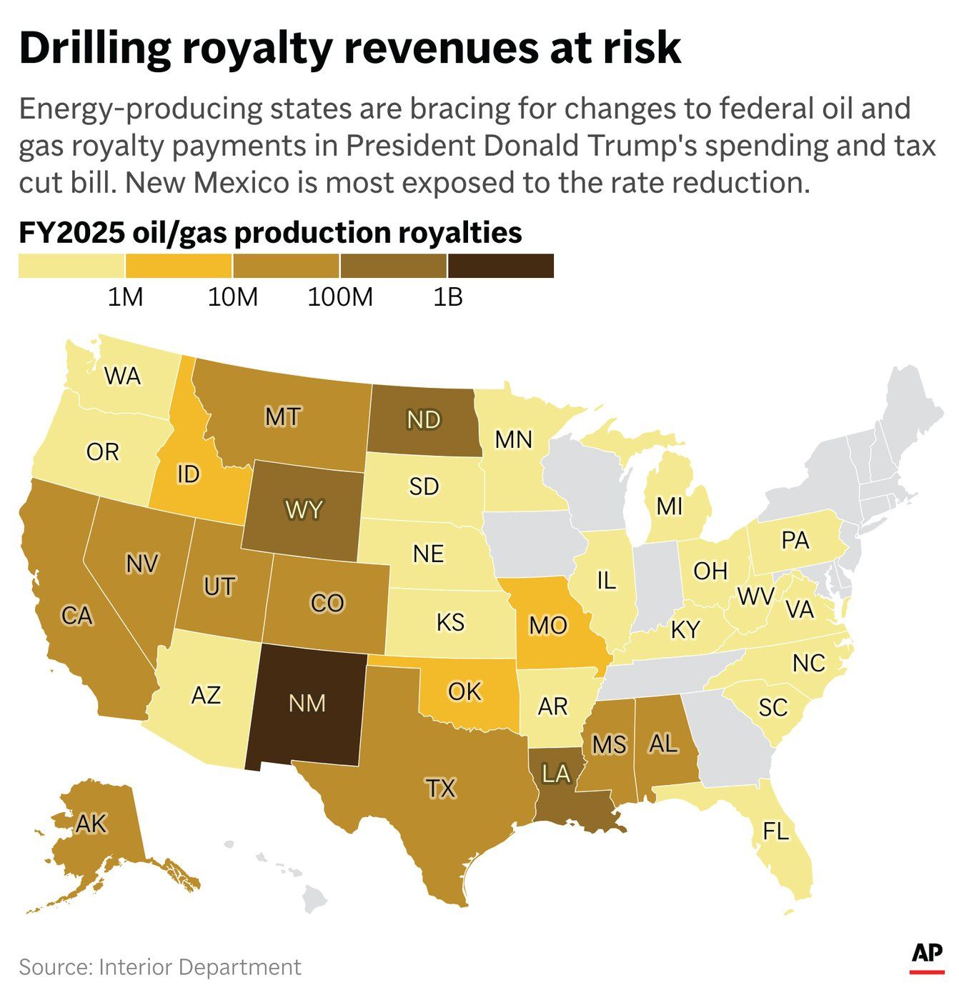 State revenues from oil and gas production on federal lands in the 2025 budget year. (AP Digital Embed)