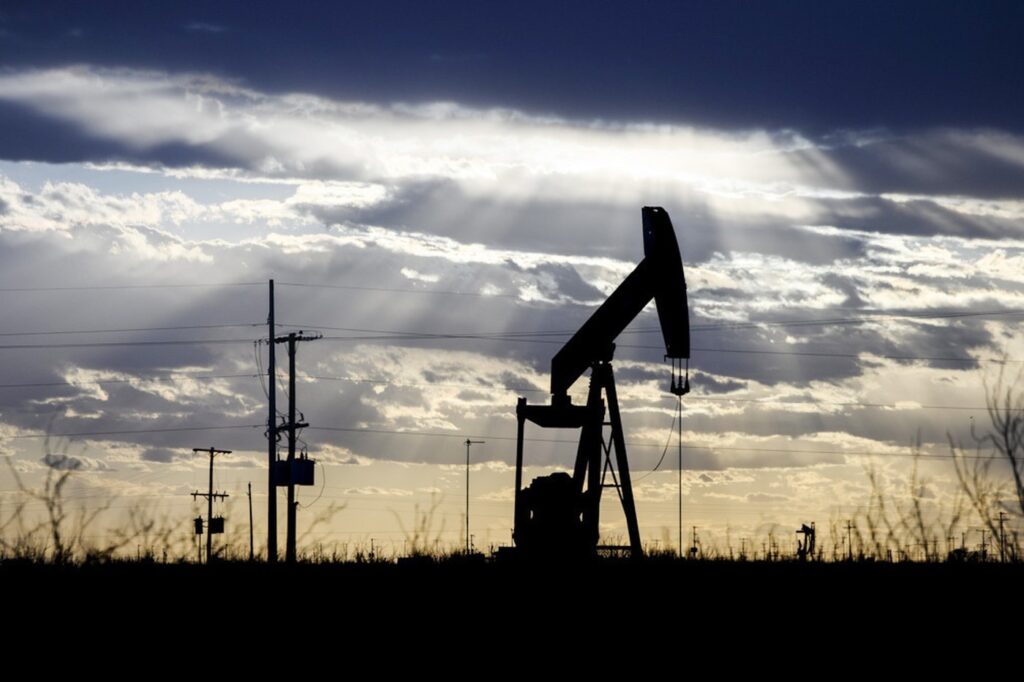 FILE – The sun shines through the clouds as it begins to set behind a pumpjack, March 30, 2022, outside of Goldsmith, Texas. United States domestic oil production has hit an all-time high, contrasting with efforts to slice heat-trapping carbon emissions by the Biden administration and world leaders. (Eli Hartman/Odessa American via AP, File)