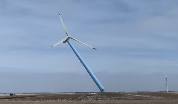 Basin Electric demolished its first two wind turbines. Screen capture/YouTube